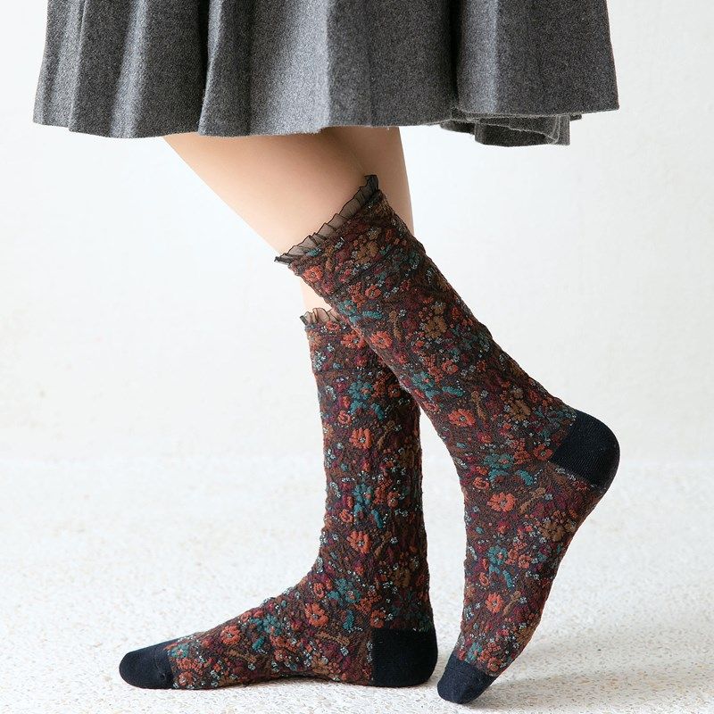 Designed as everyday apparel accessories, these socks focus on comfort, visual detail, and versatility rather than trend-driven labels, cultural references, or functional performance claims. They are not intended for sports activities, medical use, or corrective purposes. Easy to care for and suitable for regular wear, they are a practical option for women seeking floral lace mid-calf cotton socks for autumn and winter wardrobes.