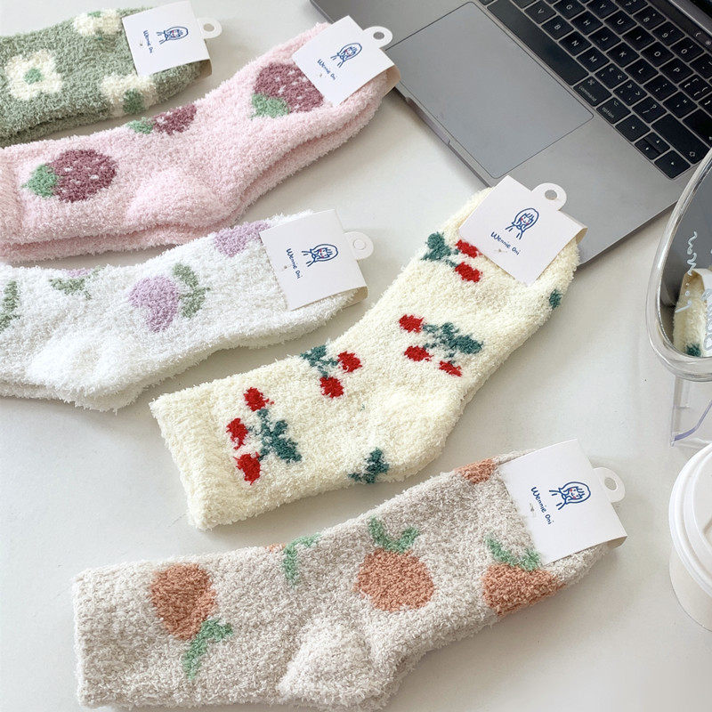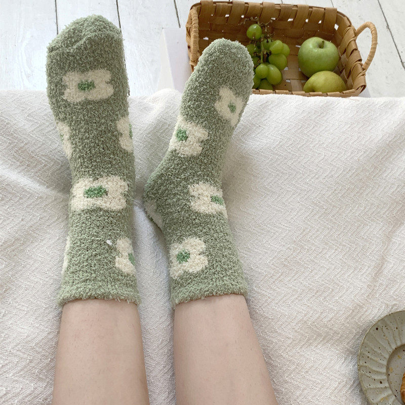 Findszx | Soft Plush Mid-Calf Home Socks for Women, Cozy Cartoon Design, Winter Indoor Wear