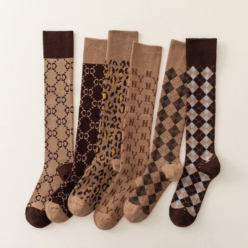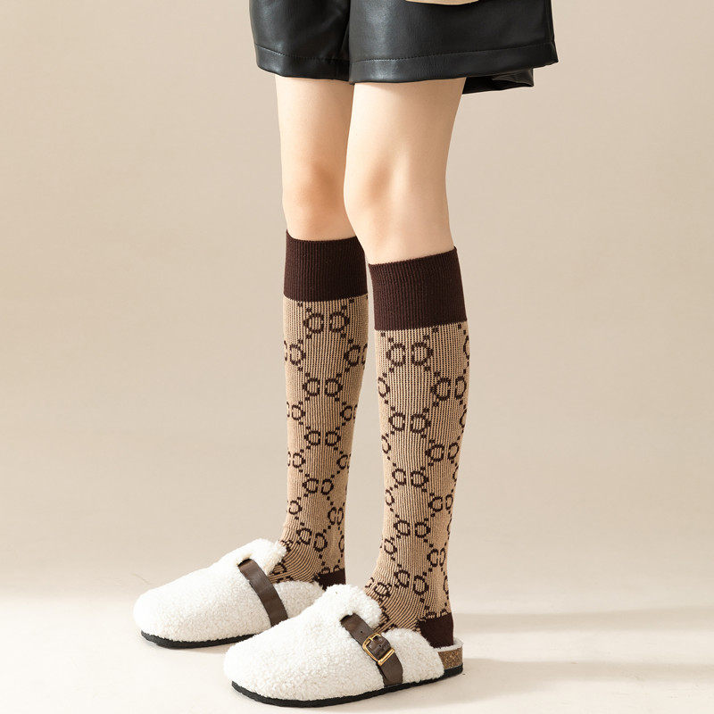These women’s calf-length cotton socks are designed for everyday fashion wear during the autumn and winter seasons. Featuring subtle letter detailing and a structured double-knit construction, they offer a clean, retro-inspired look that works well with seasonal outfits and layered styling.