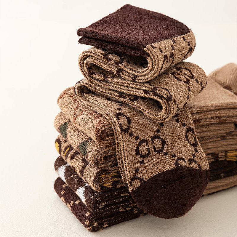 Made from soft cotton-blend fabric with a pile-knit texture, these socks provide a comfortable feel suitable for cooler weather. The long tube, calf-length profile pairs easily with boots, loafers, sneakers, and casual footwear. A warm brown-toned color palette adds a classic, understated appearance that complements a wide range of autumn and winter wardrobes.
