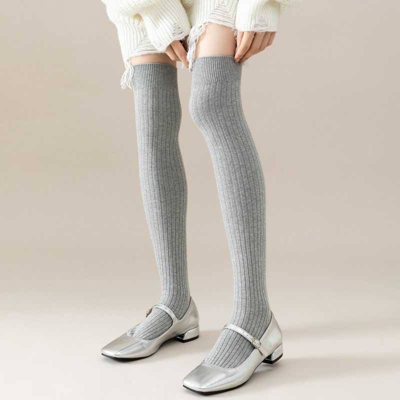Findszx | Women’s Ballet-Inspired Over-the-Knee Cotton Socks with Vertical Rib Detail for Autumn & Winter Wear