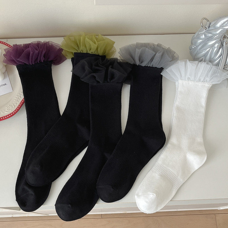 Made from a breathable cotton-blend yarn, these socks offer comfortable wear for regular use. The knee-high to mid-high length provides versatile styling options and pairs well with skirts, dresses, loafers, ankle boots, and casual footwear. The lace detailing adds a delicate accent while keeping the overall design easy to coordinate with a wide range of wardrobe pieces.