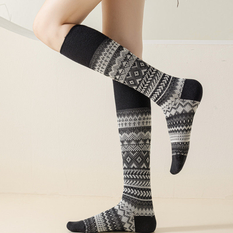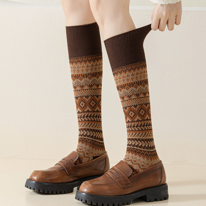Findszx | Women’s Retro-Inspired High Cotton Socks with Double-Knit Design for Autumn & Winter Wear