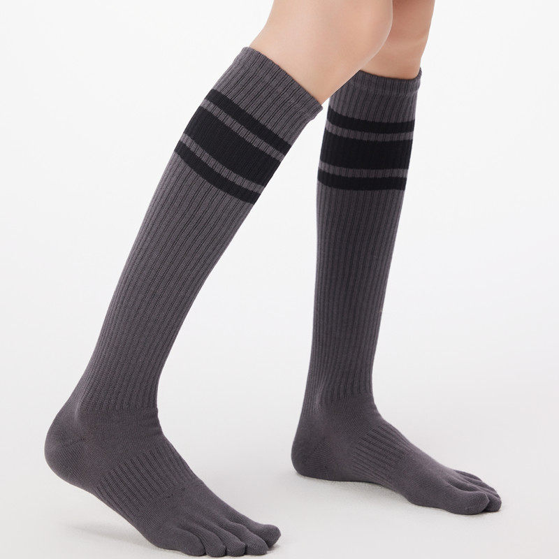 Findszx | Women’s Knee-High Five-Toe Cotton Socks with Striped Design for Spring & Autumn Wear