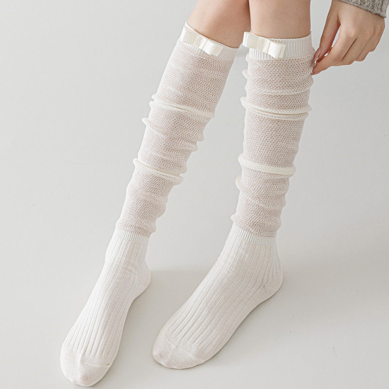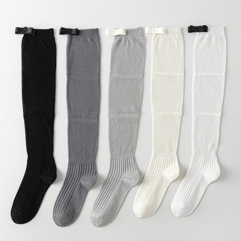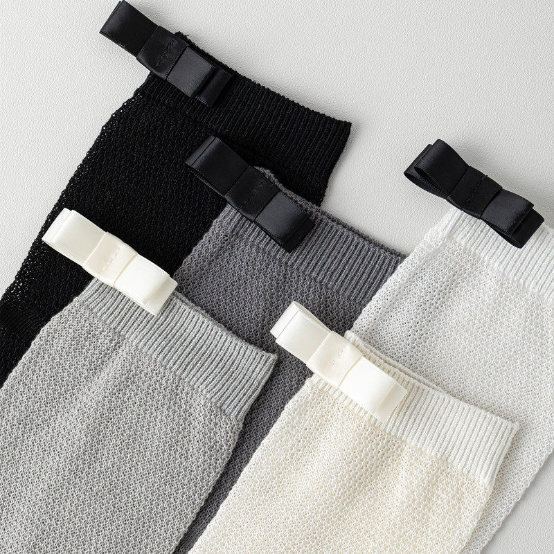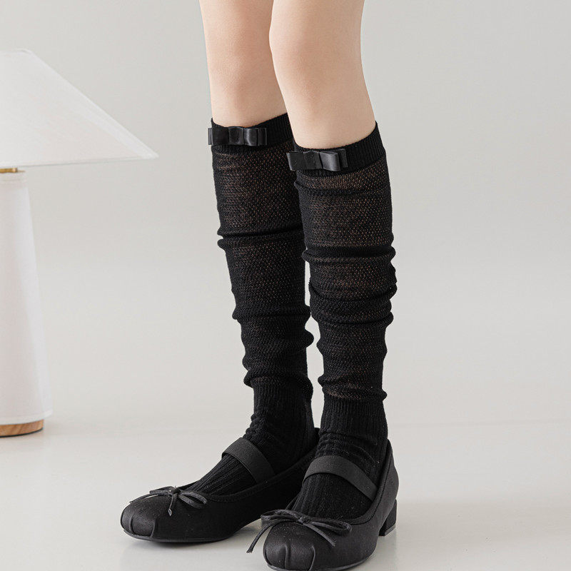 These women’s long calf socks are designed for everyday fashion wear, featuring a ballet-inspired silhouette with a delicate bow accent and a lightweight mesh-knit texture. The combination of soft detailing and airy construction creates an elegant, refined look suitable for warm-weather styling and layered outfits.