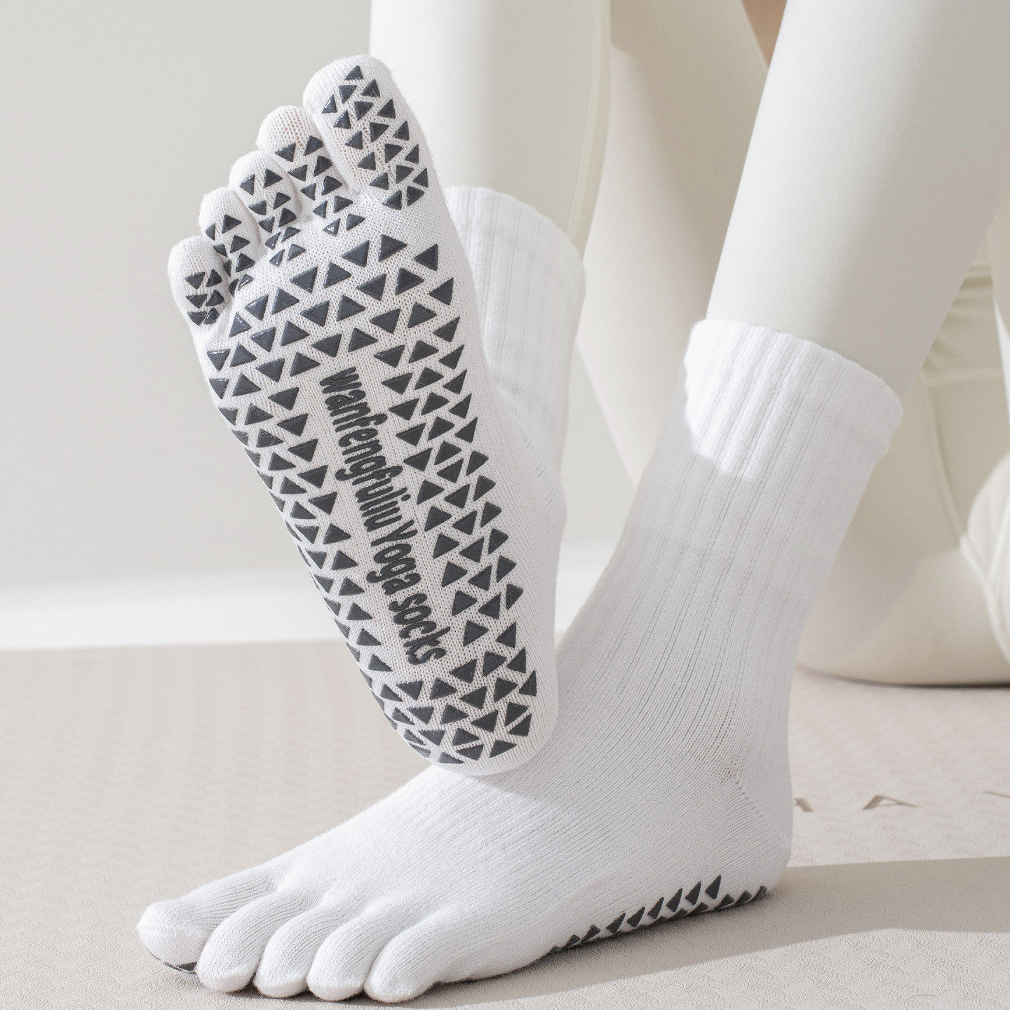 Findszx | Women’s Solid Color Mid-Calf Five-Toe Yoga Socks with Grip for Pilates & Indoor Fitness