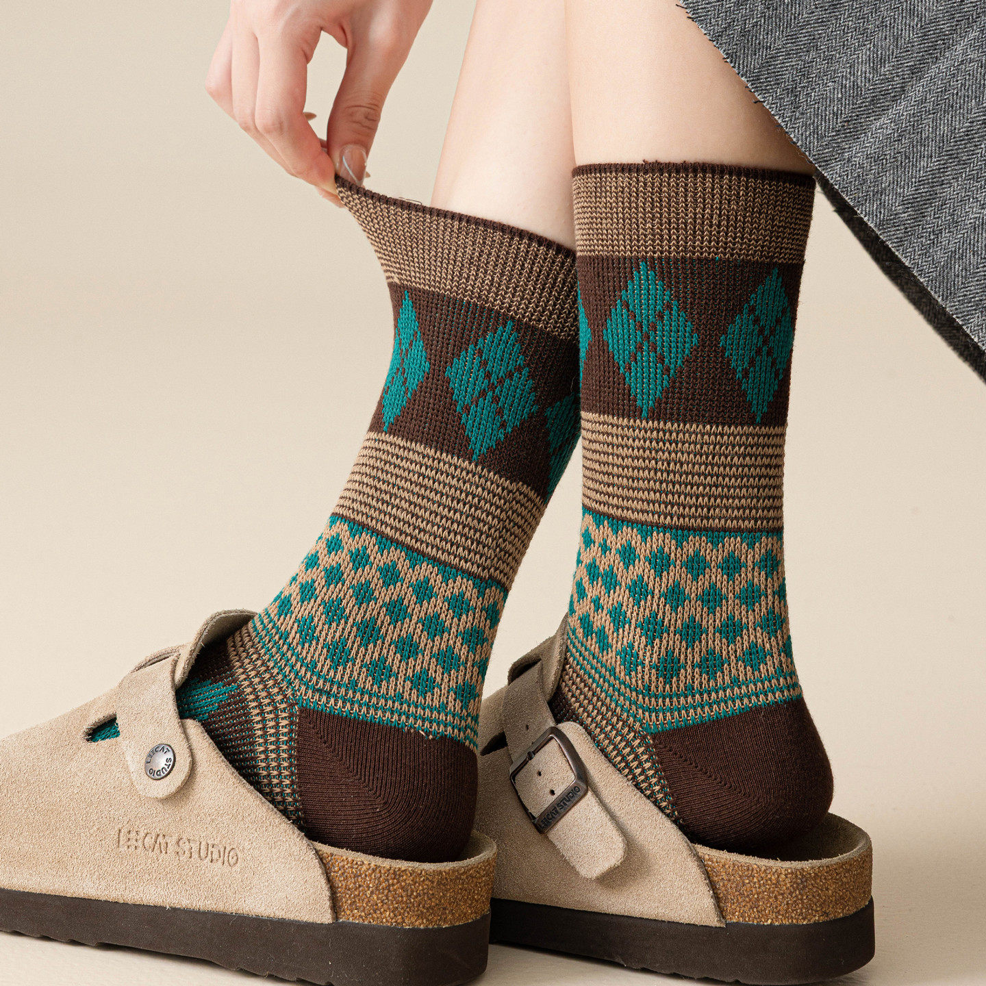 These women’s mid-calf cotton socks are designed for everyday fashion wear during the spring and autumn seasons. Featuring a double-knit, double-sided construction and a subtle pile-knit texture, they offer a structured yet comfortable look suitable for daily outfits and light seasonal layering.