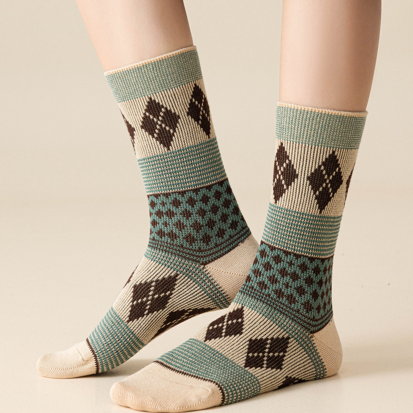 Findszx | Women’s Double-Knit Mid-Calf Cotton Socks with Soft Pile Texture for Spring & Autumn Wear