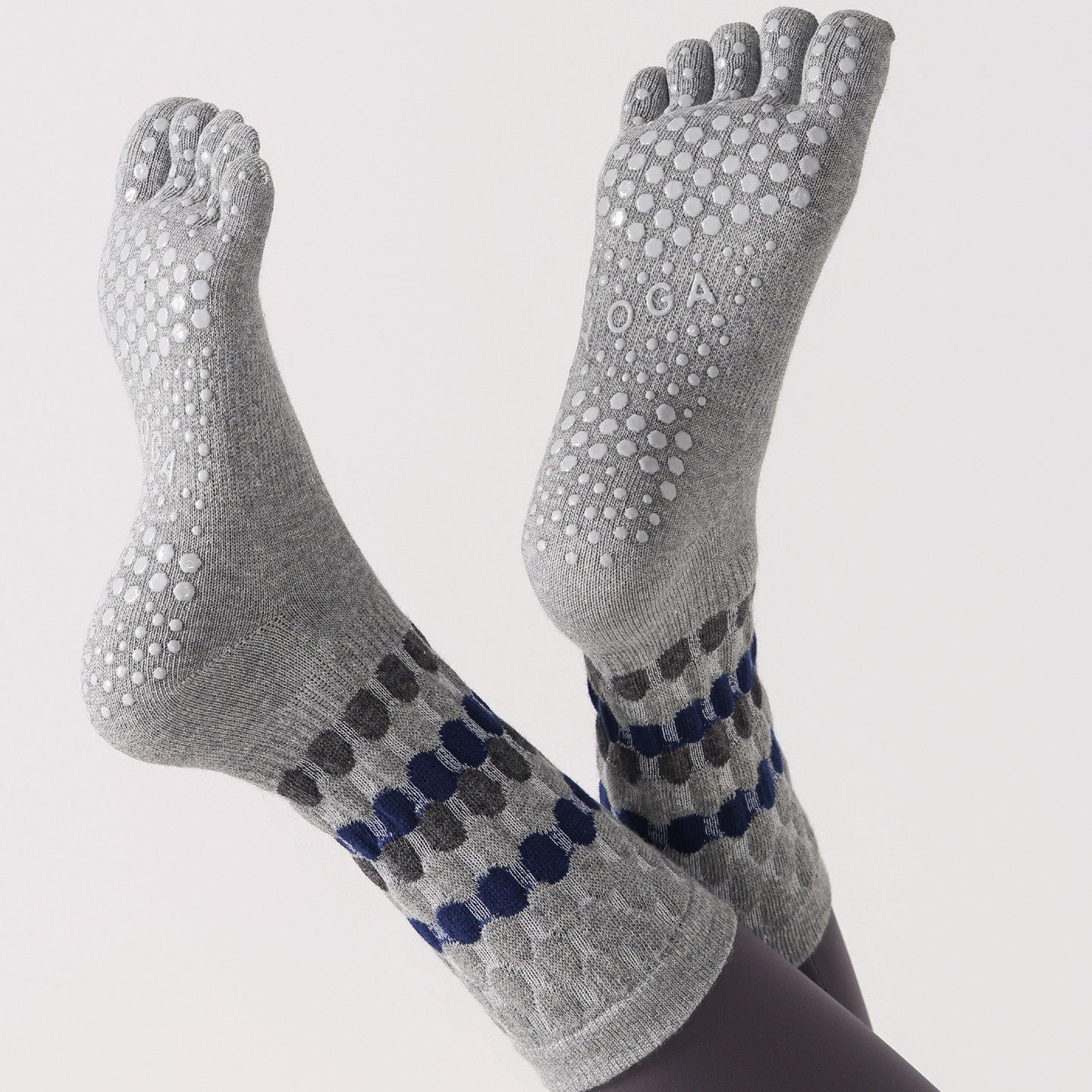 These women’s five-toe yoga socks are designed for indoor fitness activities such as yoga, pilates, barre, stretching, and floor-based workouts. Made from soft cotton fabric, they provide breathable comfort and lightweight coverage while allowing each toe to move independently for a more natural feel during balance and flexibility exercises.